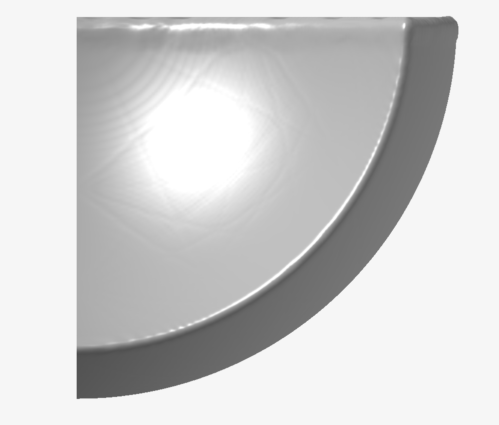 - 球形表面开始呈现直线图案/纹理。这是平滑化滤波器的非线性特性造成的结果。这是从下面第二张图片的不同视图中突出显示的结果。