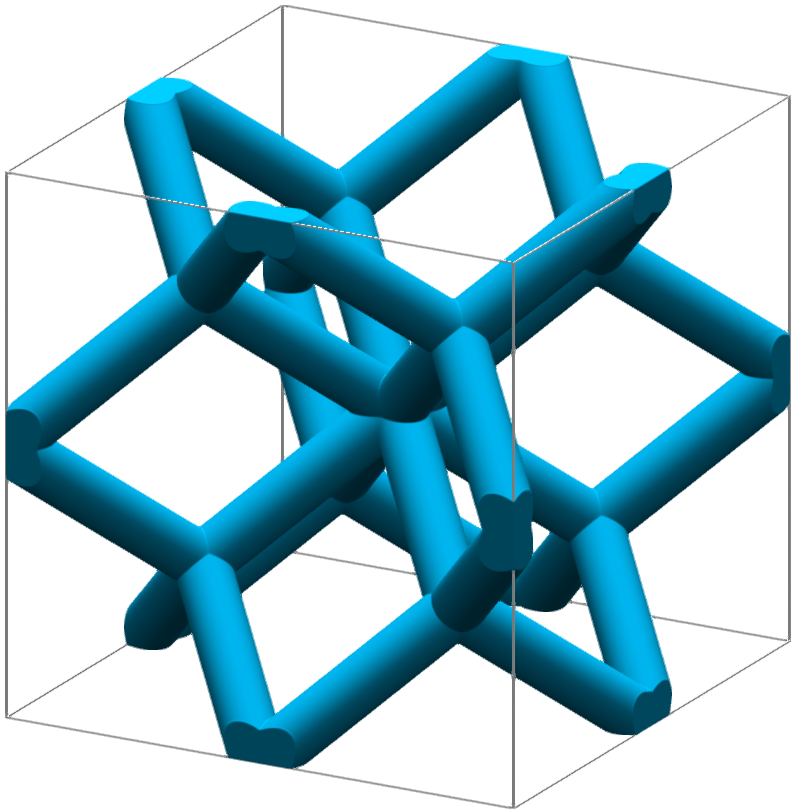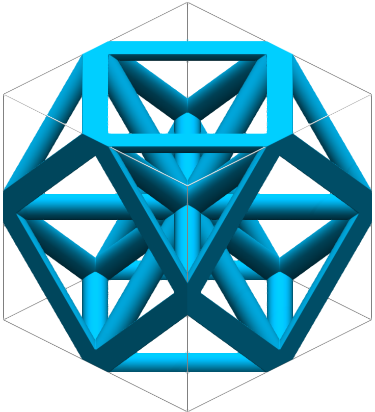 使用支柱格栅结构填充隐式主体,支柱格栅结构由梁连接的节点构成。