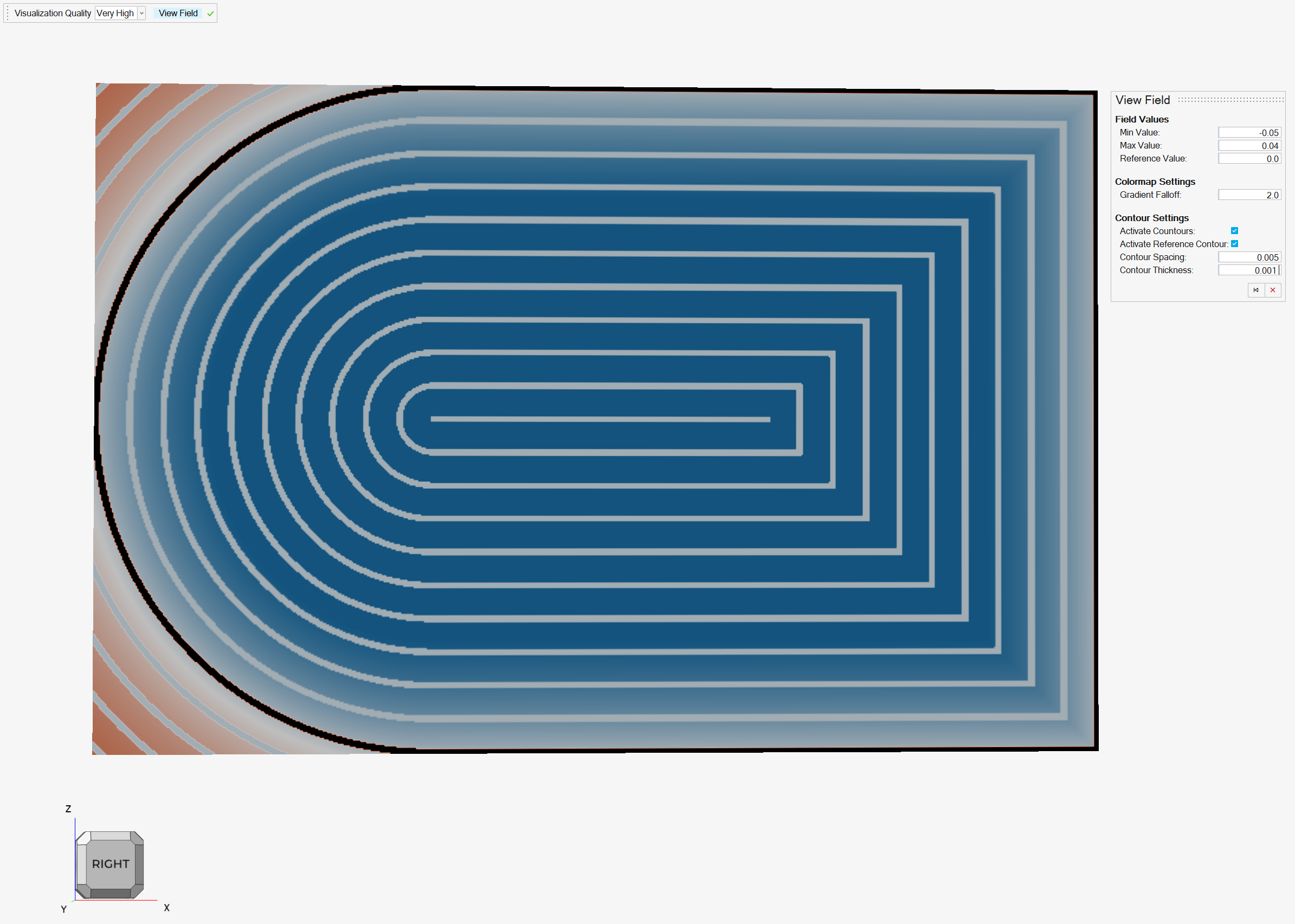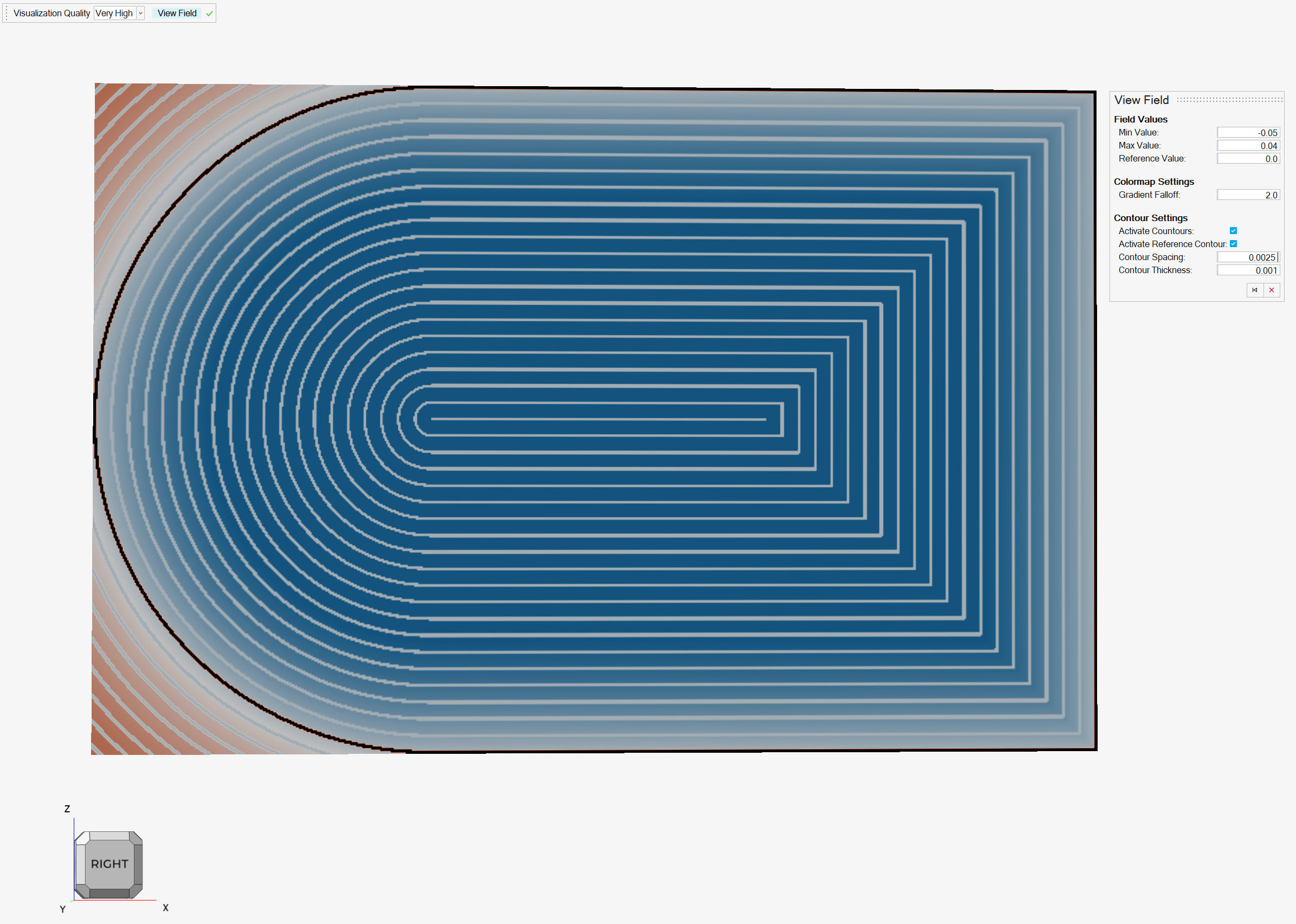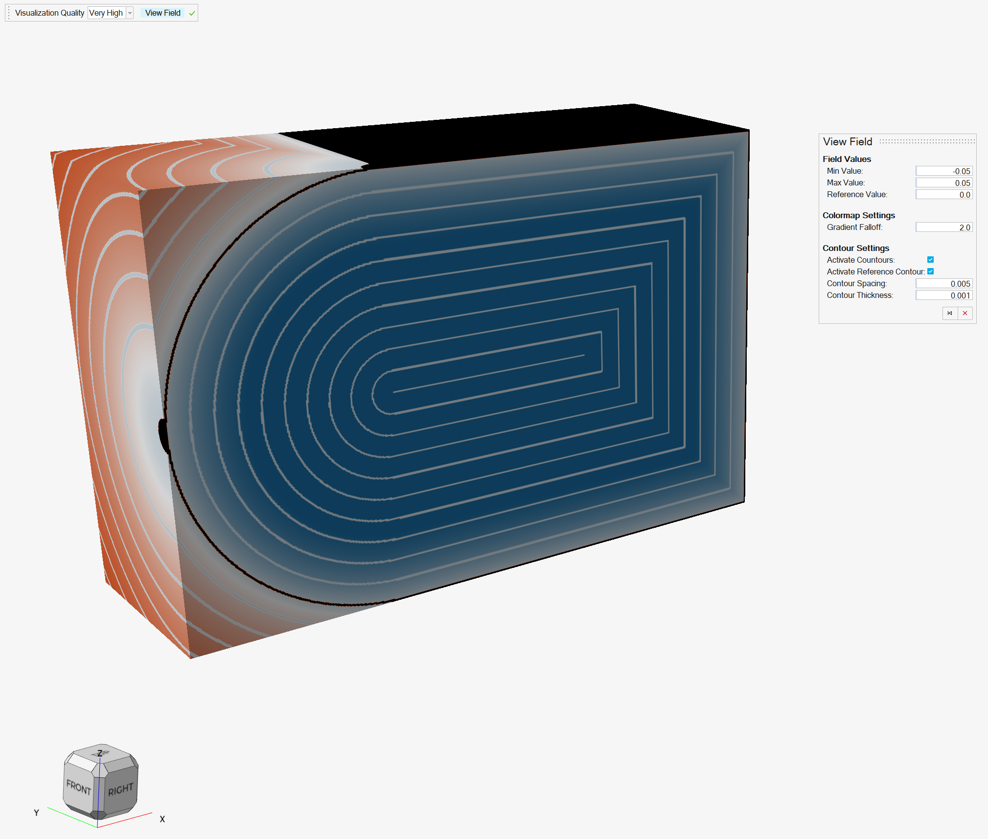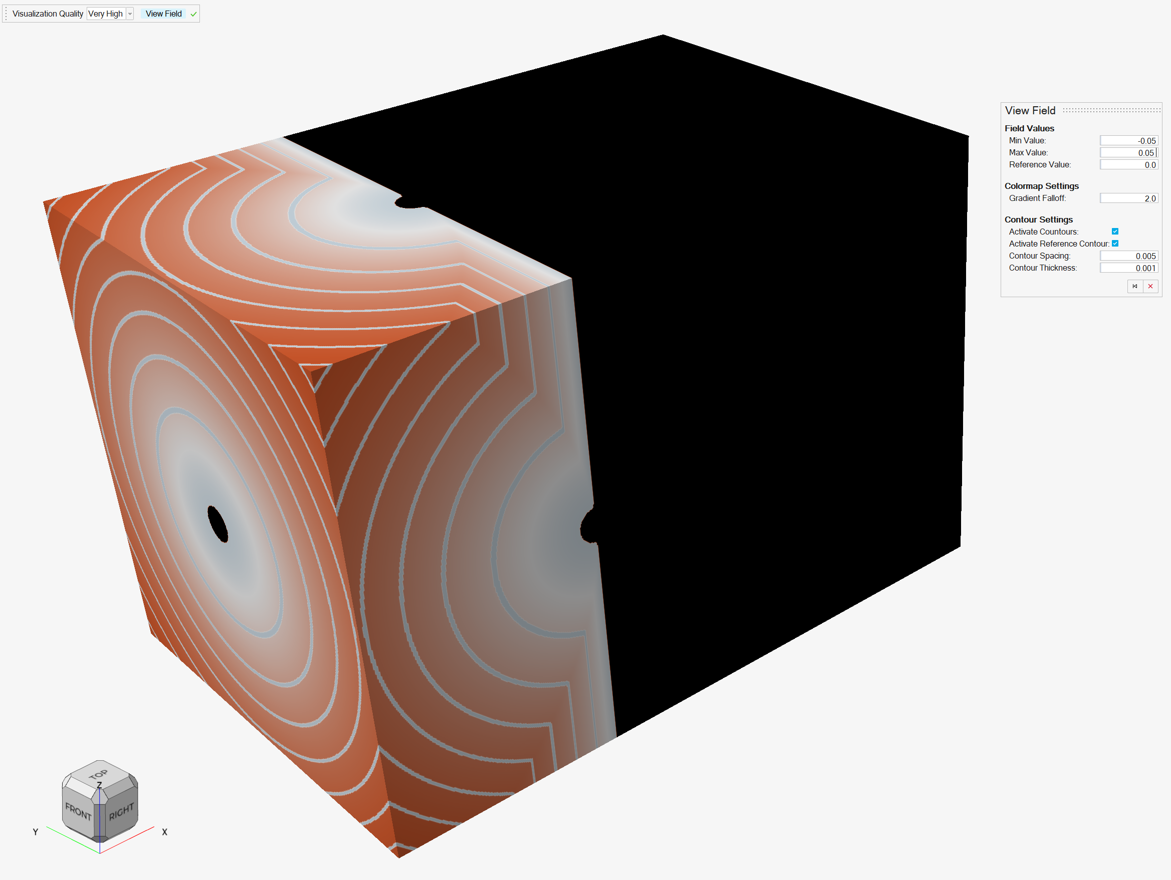 想象隐式主体的底层场并不总是那么容易,特别是在对该场执行了几种操作之后。查看场设置使用户能够使用轮廓和色图来可视化隐式对象的底层场。此工具与剖面一起使用时最有效,这样还可以查看物体的内部。