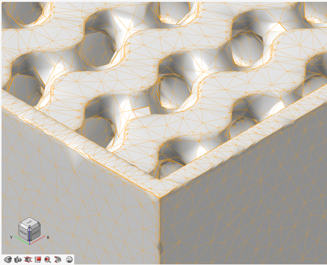 首先,您应该注意,转换中生成的网格质量与隐式建模期间使用的可视化质量设置直接相关。如果使用“极高”设置,三角形网格将非常精细,如下图所示。使用越来越低的可视化质量设置将产生越来越粗糙的网格。