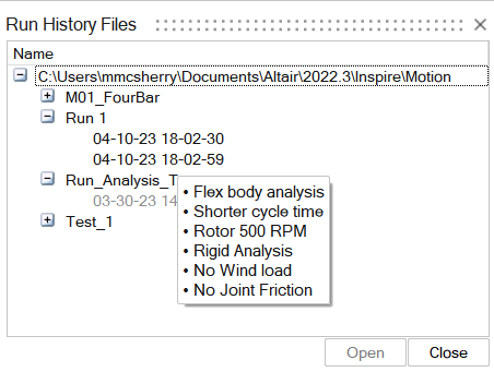 - 可选:输入分析的说明。将鼠标悬停在图表管理器中相应的运行记录文件上时,将以工具提示的形式显示说明。