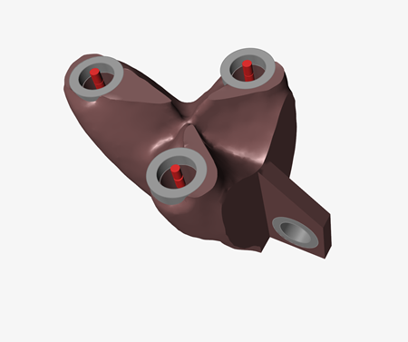 径向 径向拔模方向是制造约束的一种。当加工工具需要以径向方向进入平面中心时使用。 施加径向拔模 选择“径向拔模”工具并点击一个设计空间,对其施加径向拔模。 在“结构仿真”功能区上,选择“形状控制”图标中的拔模方向工具。 提示: 要查找并打开工具,按 Ctrl+F。更多信息请见查找和搜索工具。 选择二级功能区中的径向拔模工具。 点击一个设计空间,对其施加径向拔模方向。 此时弹出一个小对话框和三个正交的平面。激活的平面显示为蓝色。 选择一个平面以确定拔模方向。 鼠标右击划过勾选标记以退出,或双击鼠标右键。 提示: 点击小对话框上的 图标,避免优化零件内部形成空洞。 点击小对话框上的 图标,将零件指定为障碍。 径向拔模示例 图 1. 设计空间 图 2. 施加了径向拔模方向的优化形状