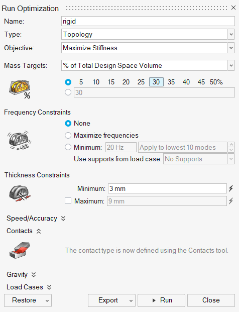 点击“结构仿真”功能区“优化”图标上的运行优化