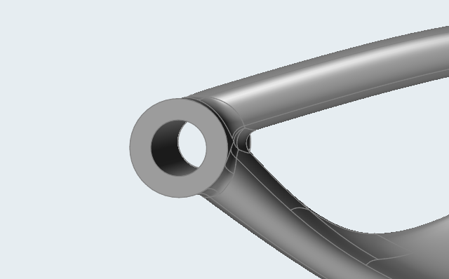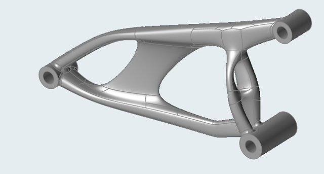 本教程将以摩托车后摇臂为例进行说明,摇臂上的减震器、车架和轮轴等连接结构未知,但提供了连接点所承受的载荷。本教程共包含两个主要章节: