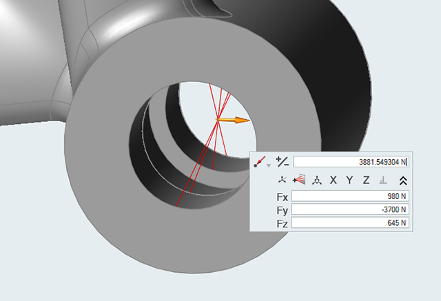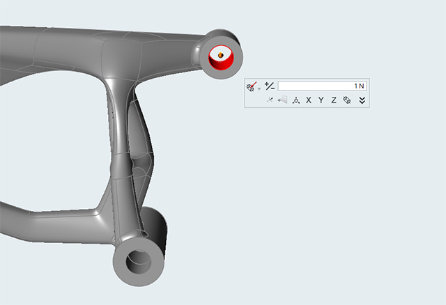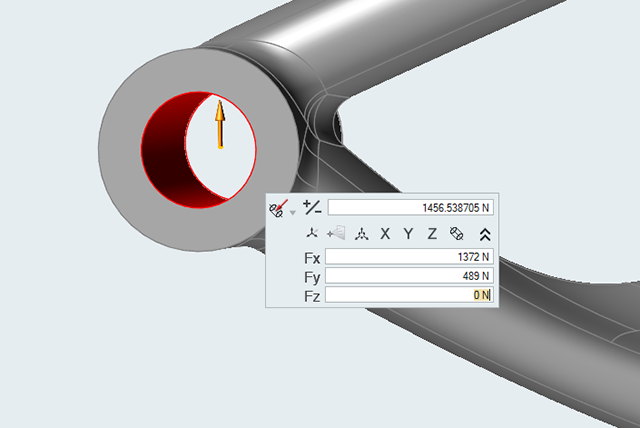选择施加力工具,然后向轮轴的孔中心施加力。