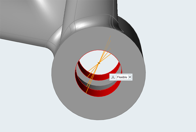 如下图所示,选中两个面,在孔中心创建一个连接器: