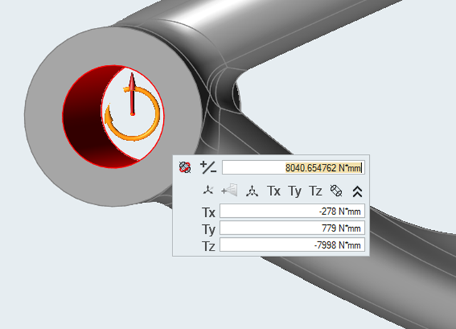 选择施加扭矩工具,然后向连接器的中心点施加扭矩。