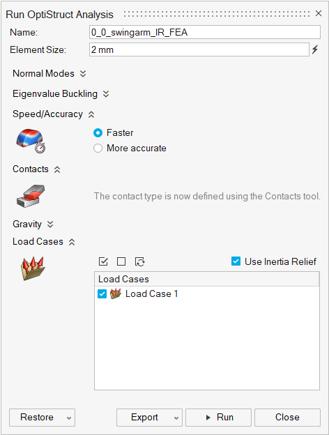 惯性释放是一种用于分析未受限结构的数值方法。一个典型示例是平稳飞行的飞机,其承受的升力、阻力和推力载荷由作用于整架飞机质量上的重力来平衡。重力加速度等于为未受限结构生成的加速度,但方向相反。