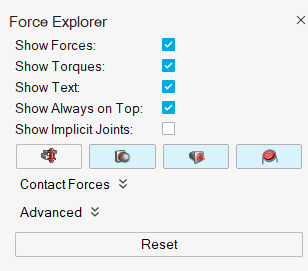 在多个零件之间创建运动接触,然后使用“力浏览器”使力可视化。
