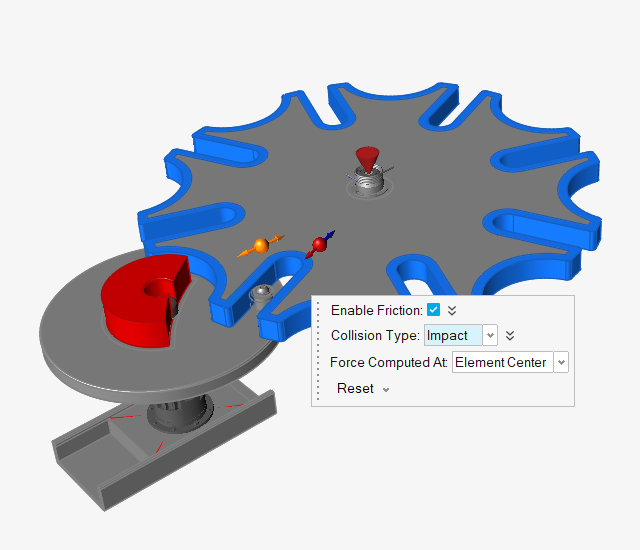 接触区域的力矢量现在可以使用笔直的蓝色箭头指示切向分量(代表摩擦),法向力分量则显示为红色。