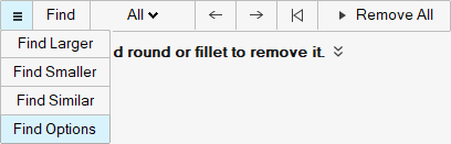 注意:默认搜索值可能会自动查找到超过预期数目的倒角和圆角。点击操作栏上的