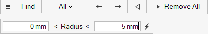 此操作可对搜索结果进行过滤,只有半径为 0 mm 至 5 mm 的倒角和圆角才会被选中。