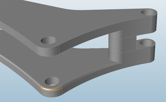 - 如果存在多个毗邻的圆角或倒角,双击其中一个即可选中整串。选择相邻的圆角或倒角可将其添加到串中。