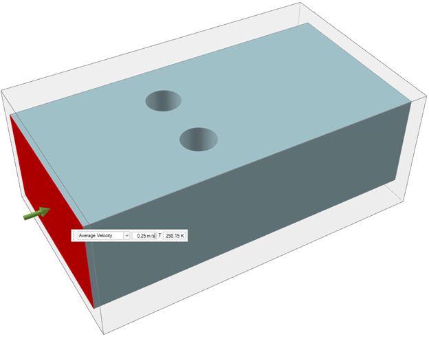 - 在小对话框中,输入 .25 m/s 作为平均速度。使用默认值 298.15 K 作为温度。