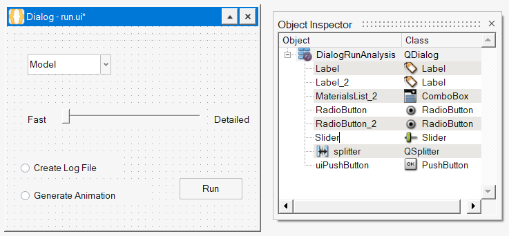注: 对象名称不能与可作为标签的文本相混淆,例如您在示例对话框中看到的 "Fast" 和 "Detailed"。文本本身是一种对象,并在对象检查器中列出。