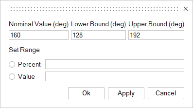 - 设置范围:根据高于或低于公称值的百分比或值差来设置连续变量的范围(最小值和最大值之间)。默认情况下,范围为公称值的 +/- 10%。