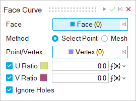 4. 若要沿 U 或 V 方向放置曲线,请为 U 比率V 比率输入 0 到 1 的值。