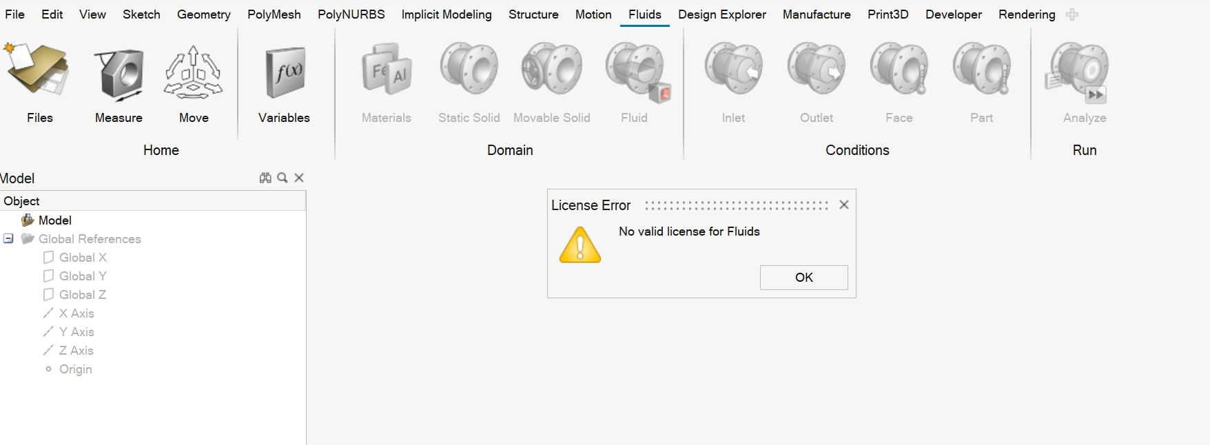 当您选择功能区上的某个选项卡且显示以下许可错误信息时,您应检入特定许可功能,以绘制足够的 Altair 单位。