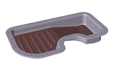 优化过程中,被指定为设计空间的零件会发生变形,而非设计空间的零件则会保持原样。模型中可设置多个设计空间。被指定为设计空间的零件显示为红棕色,如下图所示:设计空间显示为红棕色。非设计空间显示为灰色。