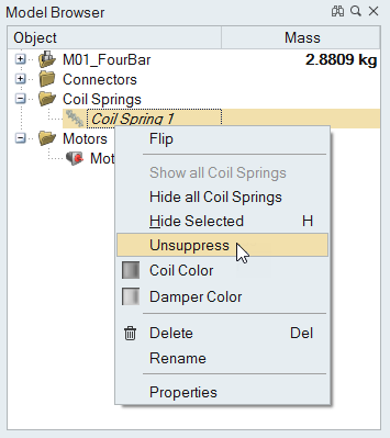 抑制和解除抑制模型中的铰接、螺栓连接和运动实体。