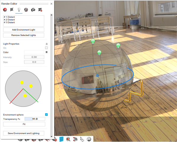 透明度只能使用渲染编辑器进行调整。 自动使光源适应场景 - 在渲染编辑器中,启用环境球体。