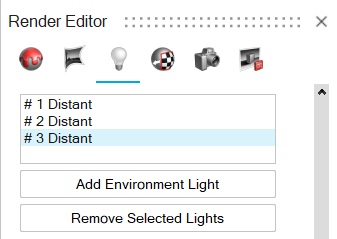 适应选项仅在渲染编辑器中可用。 删除光源 - 从列表或图示中选择光源