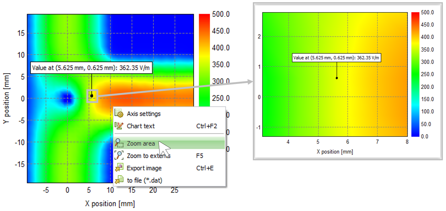 Figure 3. Surface graphs in POSTFEKO support interactive zoom.