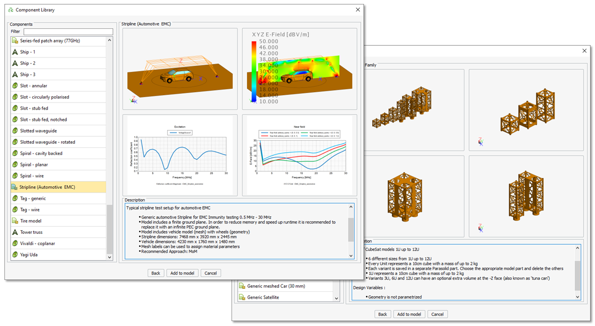 - A model of a stripline antenna for EMC immunity testing was added to the component library.
