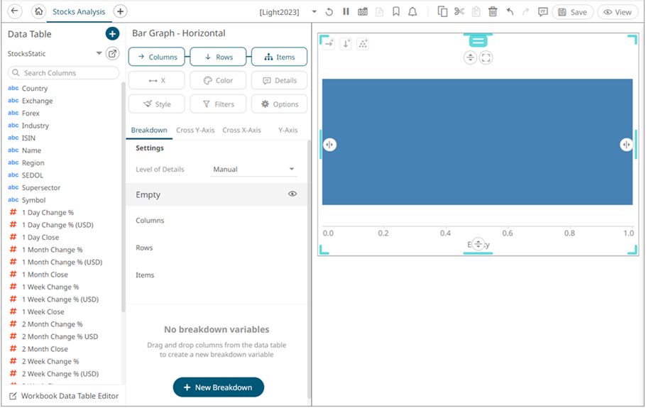 Note that in this sample visualization, there is a column (Mcap (USD)) dragged and dropped to the X variable.