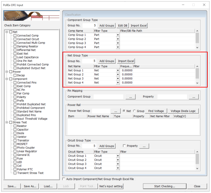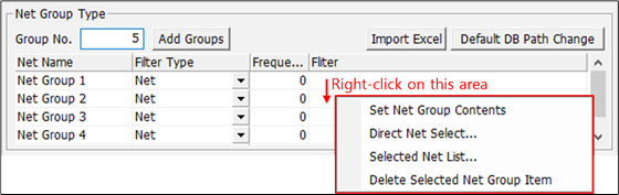 Certain types of nets or routing patterns can be grouped to be checked for the same rule. Create different net groups to check against different rules.