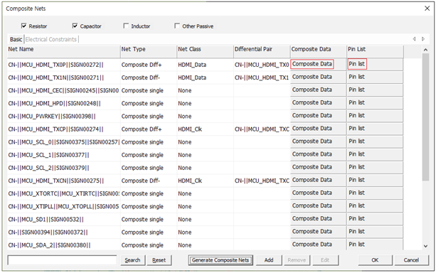 The Selects Nets to Exclude dialog opens. You can specify nets that should not be composited with other nets, such as Power and Ground nets.