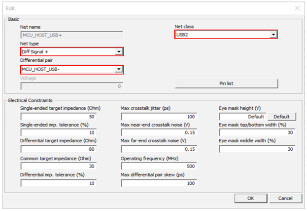 Figure 40.The Edit dialog displays. - For Net type, select Diff Signal +.
