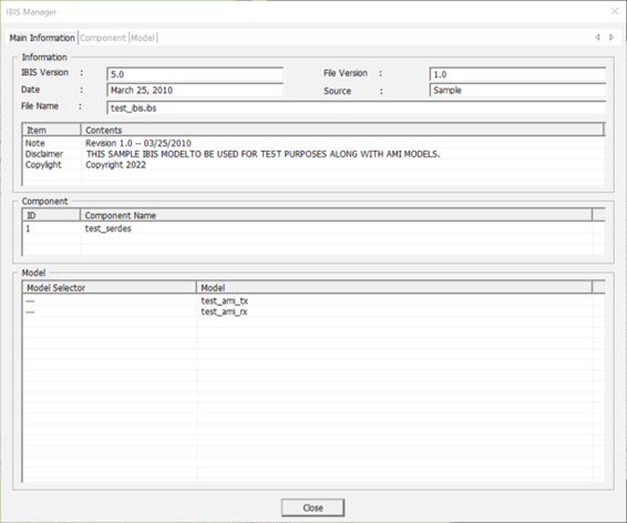 Figure 15.Check the information of IBIS-AMI file in the Main Information tab.
