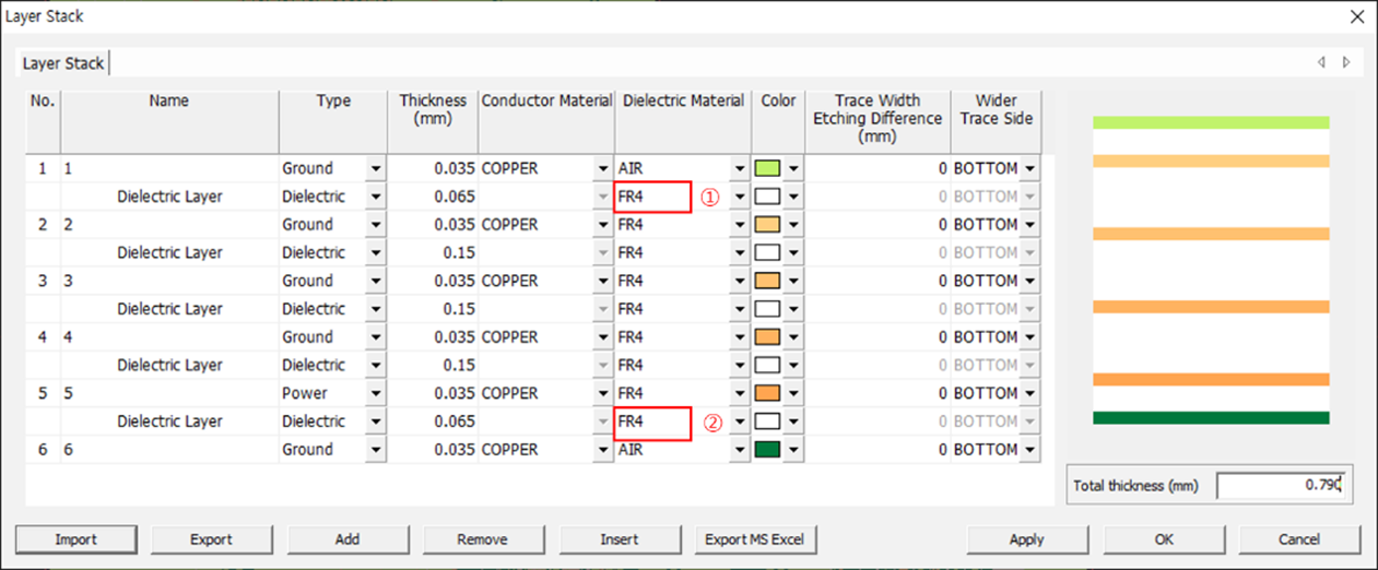 Figure 3.The FR4.0 and PSR3.0 materials are registered as new materials with the names FR4.0 and PSR3.0.