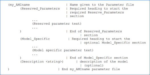 Figure 17.The .ami file must contain a distinct section or sub-tree named 'Reserved_Parameters' beginning and ending with parentheses. The file may also contain another section or sub-tree named 'Model_Specific', beginning and ending with parentheses. The sub-trees 'Reserved_Parameters' and 'Model_Specific' are branches of the root of the tree.