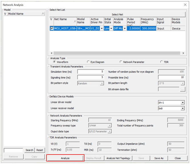 Check the connected components and pins to the selected net using the Device Model List dialog.