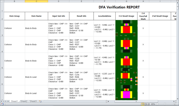 Excel export of DFA verification result.