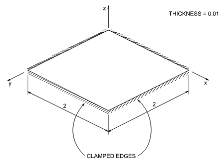 测试编号:VS05 获得集中载荷和均匀压力载荷下夹紧薄板中心的位移。