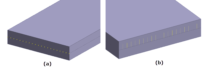 双金属梁由两层热膨胀系数不同的材料组成。梁的顶面和底面承受均匀的温度载荷。(图 1)。梁的两侧和两端均隔热。梁的一端由铰链支撑,另一端由滑动铰链支撑。图 1.