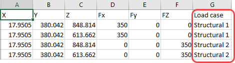 导入的力显示在对话框中,并映射在 模型视窗 中。如有必要,可以编辑表中的值。