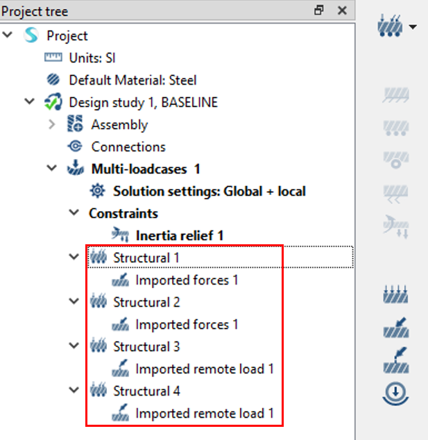 载荷工况会显示在项目树中。载荷工况的名称取自 .csv 文件。