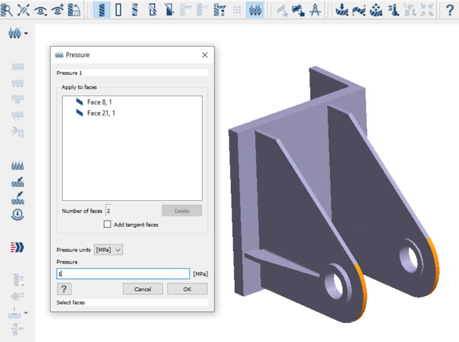 新的载荷工况将列在工作台中。通过手动创建,可以添加压力、力和远程载荷。