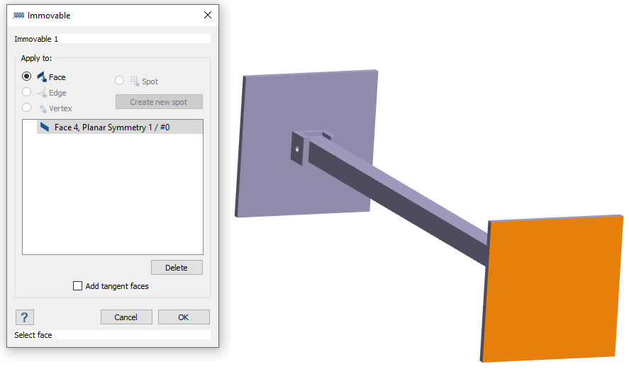- 在打开几何体文件对话框中,选择 hinge_beam.x_b。