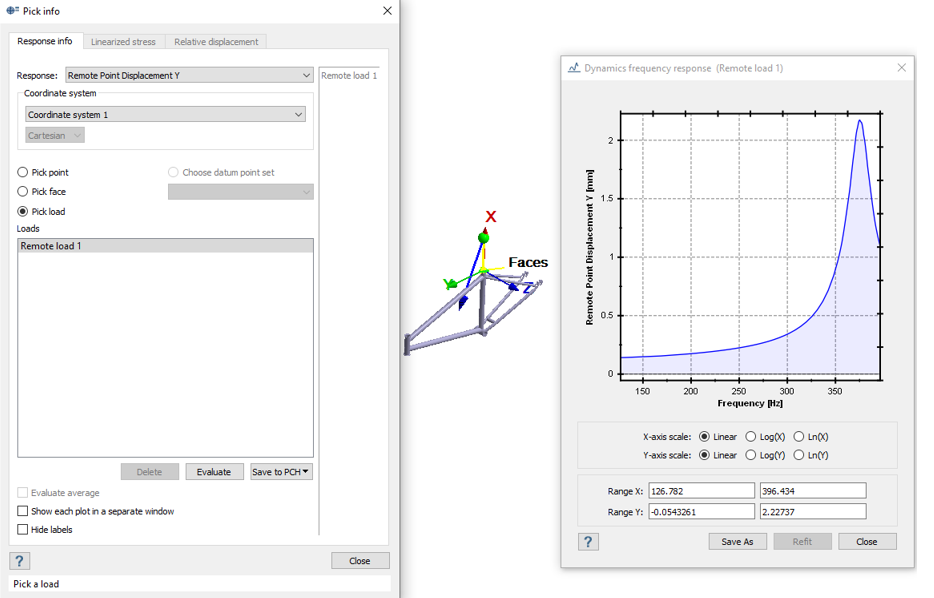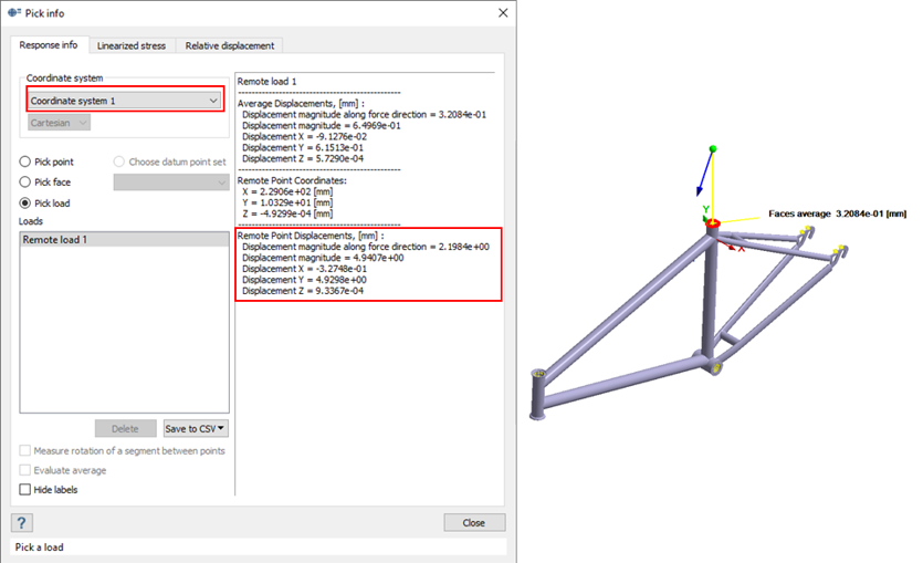 系统会计算沿远程载荷方向和大小的位移以及沿 X、Y 和 Z 轴的位移,并显示在对话框中。