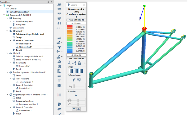 - 在项目树中,选择频率动力学 1,关联至模态 1 子工况。