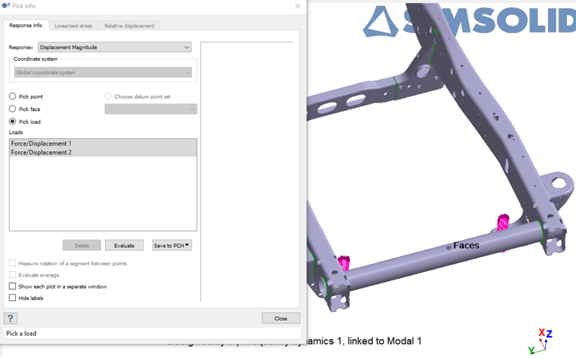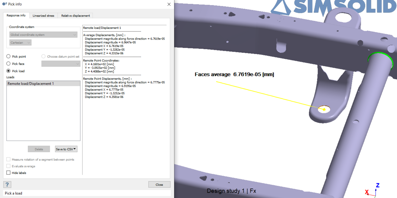 将计算并在对话框中显示沿力方向的位移大小以及沿 X、Y 和 Z 轴的位移。