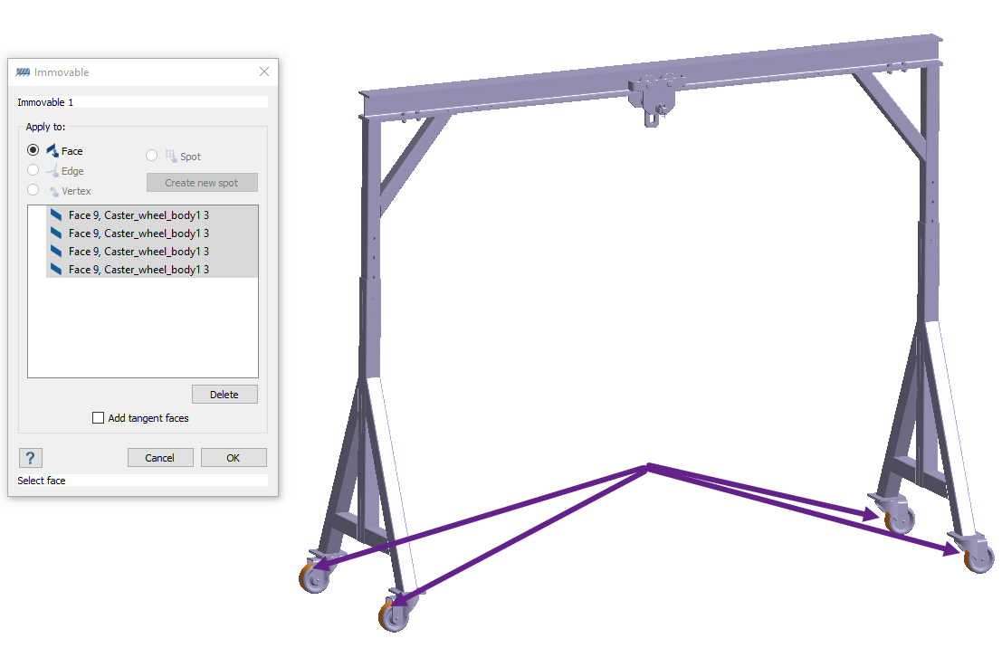在分析工作台中,点击固定支座