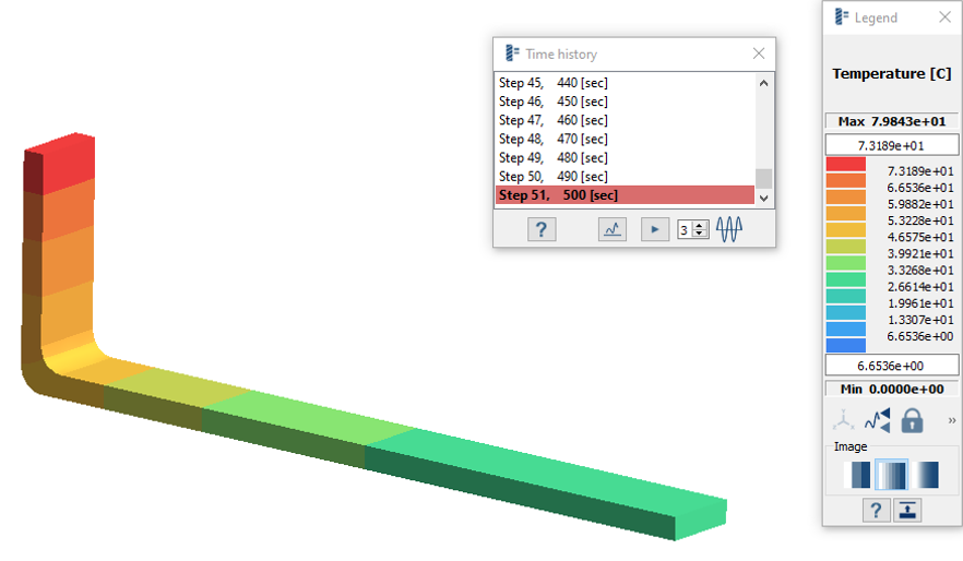 - 在时间关系窗口中,选择步长以查看相应的温度图。