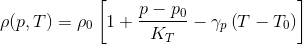• In the vicinity of the Reference pressure p0 and Reference temperature T0, the density changes linearly with pressure p and temperature T. Hence, the Isothermal bulk modulus and the Thermal expansion coefficient are constants.