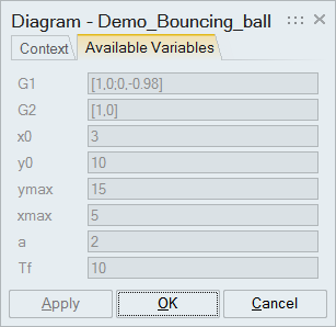 Because a model can be hierarchical and variables can be defined at different levels, the software offers the Available Variables option which lets you navigate in a diagram and get a report of all variables that are known or defined at a current level.